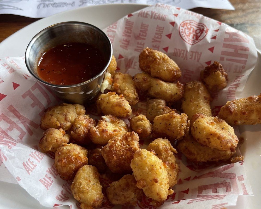 Fried Wisconsin white cheddar bites, red pepper jam.